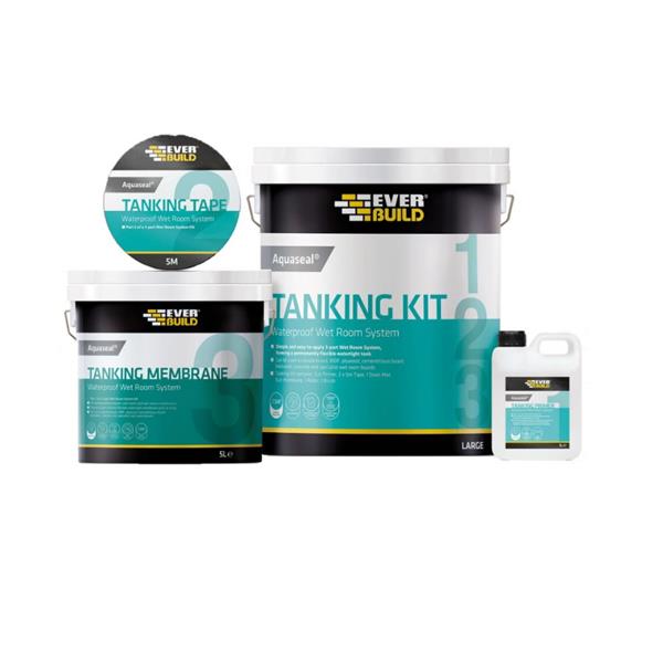 • Aquaseal Tanking Membrane (5L) – Flexible waterproof coating (apply in two coats)