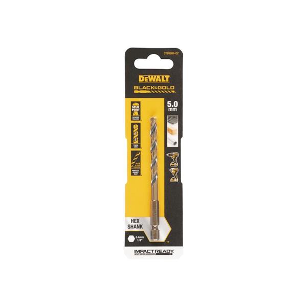 DEWALT Black&Gold Hex Hss-G Drill Bit 5.0Mm