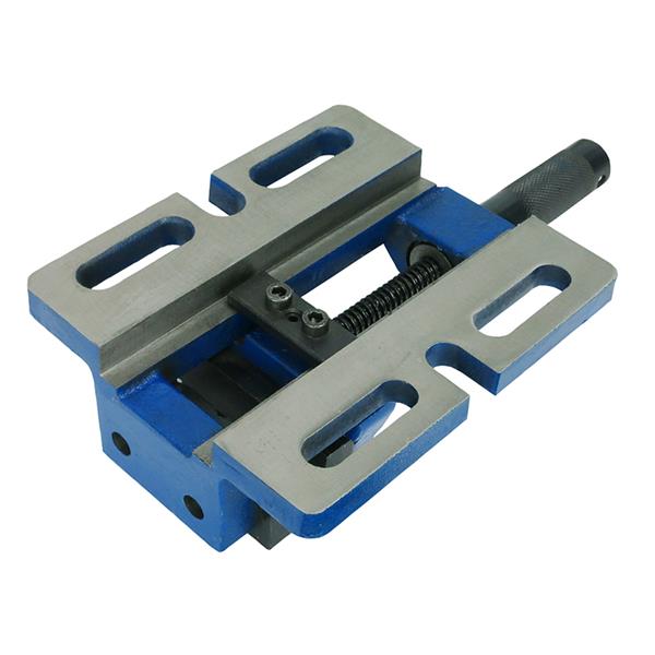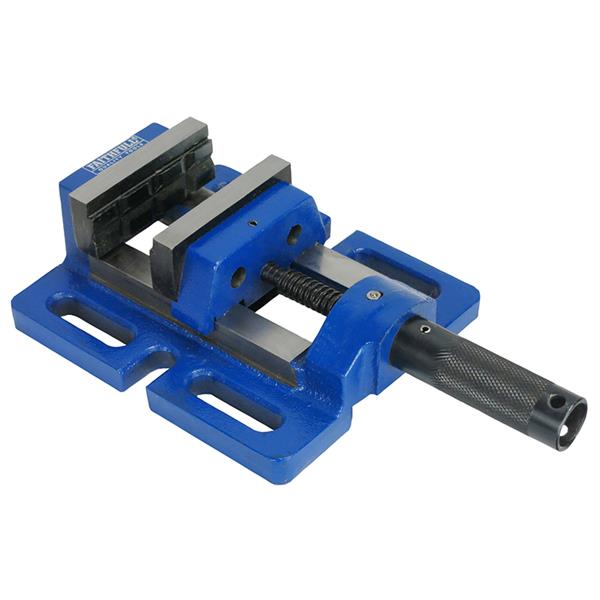 The locking spindle moves inside the hollow handle grip allowing the vice to be tightened at any position on the drilling table. Elongated clamping slots also permit rapid adjustment of the vice on the work table.