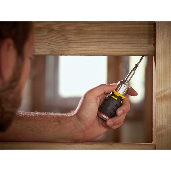 The Stanley FatMax® Stubby Ratchet Screwdriver is ideal for use in small, confined spaces. It has a large soft-grip handle that fits in the palm for comfortable use and it has a 3-position ratchet to allow right, left and fixed positions.