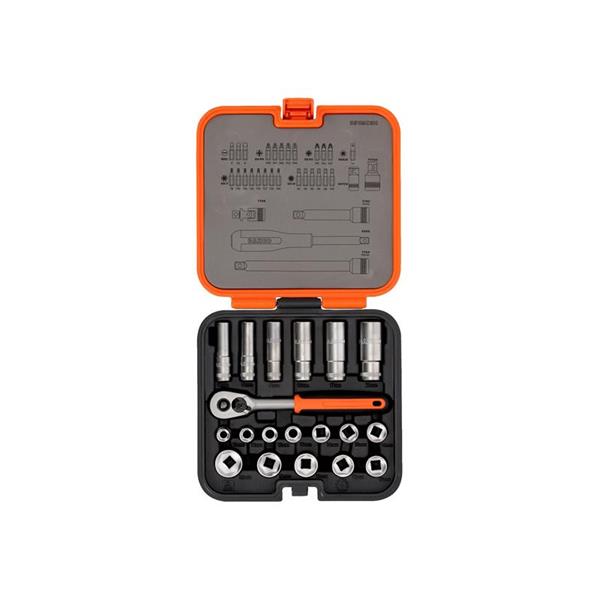 The Bahco S51MC3H 3/8in Drive Standard and Deep Socket Set contains sockets made from high performance 50BV30 alloy steel with a micro matt finish. Conforms to ISO 1174 and DIN 3120. Supplied in a high density polythene (HDPE) case. Contains: