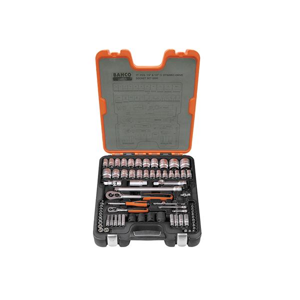 Bahco S800 chrome vanadium 1/4 and 1/2in Drive 77 piece metric and AF socket set, containing: